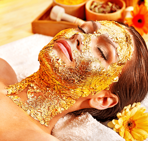 Luxurious gold facial nourishes, hydrates, revitalizes skin for radiant, glowing complexion.